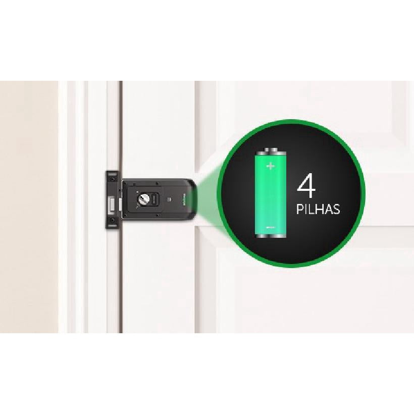 A fechadura eletrônica intelbras fr 10 possui um design discreto e compacto, com acabamento black piano e teclado luminoso que é protegido por uma tampa deslizante, para deixar seu ambiente mais moderno e o seu dia a dia mais prático. Possui 01 tipo de acionamento, senha. Possui capacidade para 09 senhas, sendo, 01 senha de administrador (para realizar as configurações da fechadura), 04 senhas de usuários (para serem utilizadas no dia a dia) e 04 senhas de visitante / acesso unico (que é valida apenas uma vez). é utilizada para controle de acesso de casas, apartamentos e pequenos escritórios. Aplicada em portas de madeira e ferro, sua alimentação é feita por 4 pilhas aa que acompanham o produto.