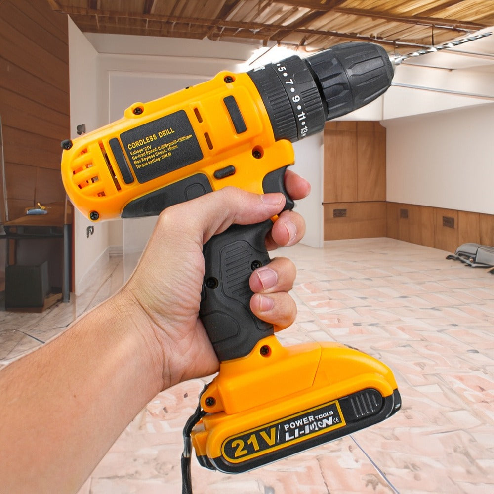 Nossa Furadeira Parafusadeira Sem Fio possui uma potente bateria de 21V, garantindo o desempenho que você precisa. Ela é bivolt, adaptando-se facilmente às suas necessidades. Com 2 baterias compactas recarregáveis de encaixe rápido e uma estação de carregamento inclusa, você nunca ficará sem energia no meio de um projeto. Além disso, a Furadeira Parafusadeira oferece 2 níveis de velocidade, um seletor de torque com 25 níveis para parafusar e 2 níveis para perfurar, tudo isso com iluminação LED na parte frontal para maior precisão.