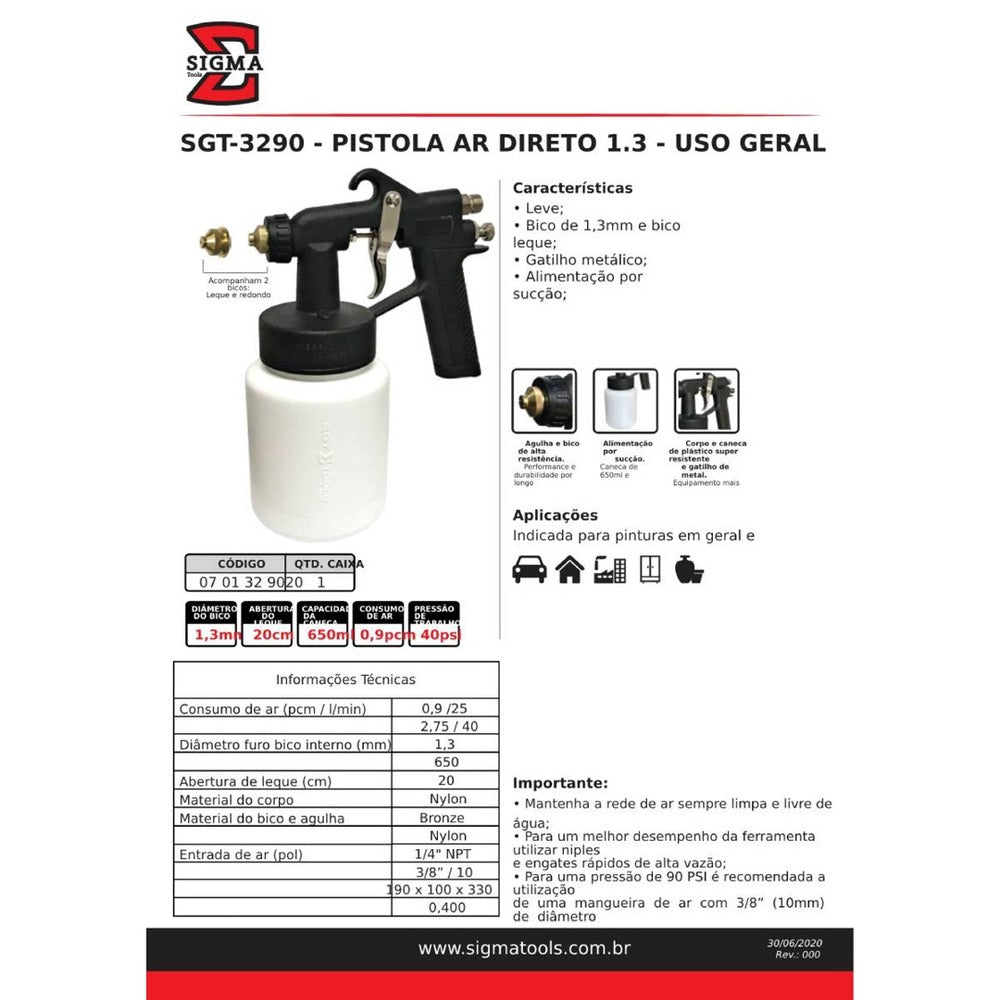 Pistola de pintura ar direto Sigma para compressor tufão ar direto acompanham dois bicos um reto e outro leque.