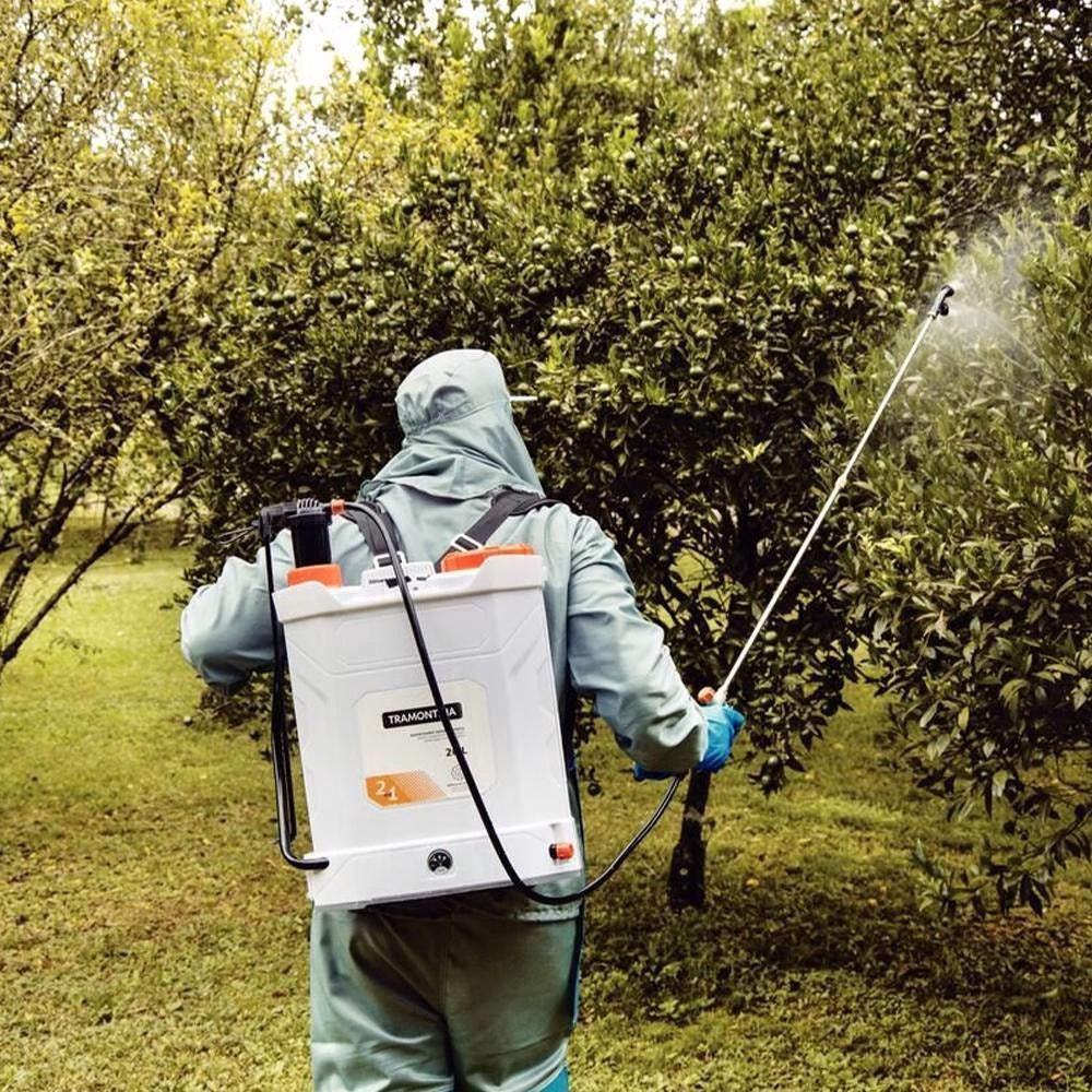 Pulverizador a bateria com opção de bombeamento manual.