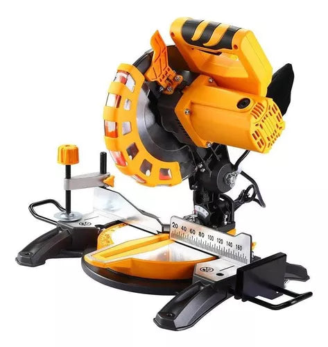 Possui base giratória para cortes em ângulo de 45° para ambos os lados, braço (cabeça de corte) com botão para regulagem de inclinação de até 45° para a esquerda, cabo com revestimento emborrachado, eixo com flange adaptadora que permite a utilização de lâminas e protetor de lâmina. Morsa e apoios laterais que facilitam o corte em peças de maior comprimento. Equipamento multifuncional, pois pode cortar madeira e alumínio. Indicada para cortar madeiras beneficiadas e derivados (não acompanha), também pode cortar cantoneiras e esquadrias de alumínio em operações leves e médias.