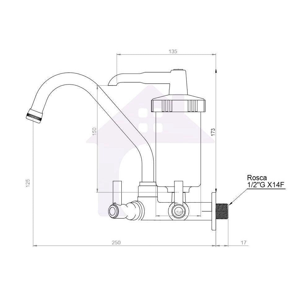 Torneira com filtro bica movel parede slim 1/4 de volta
